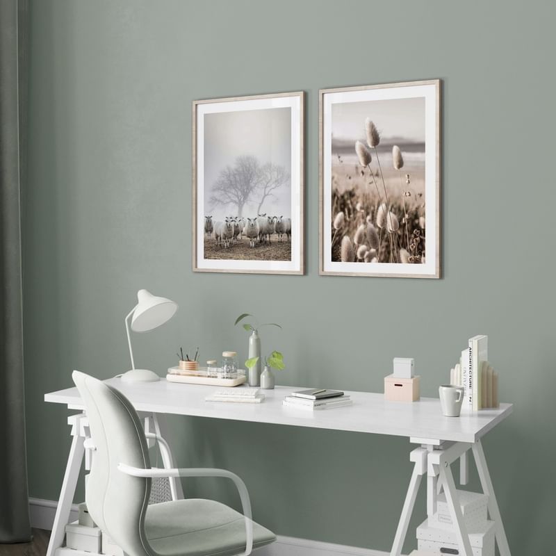 Inspirație pentru un perete cu tablouri în biroul de acasă. Pe această pagină, am adunat colajele noastre pentru biroul de acasă. Sortați după culoarea peretelui sau după numărul de postere și cumpărați întregul colaj sau alegeți posterele și ramele care vă plac cel mai mult.