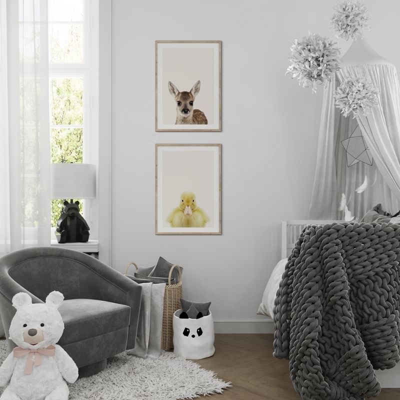 Inspiration till väggen med tavlor i barnrummet. På denna sida har vi samlat våra väggmålningar till barnrummet. Sortera efter väggfärg eller antal affischer och köp hela väggen med tavlor eller välj de affischer och ramar du gillar bäst.