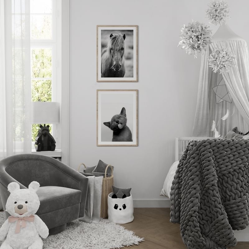 Inspiration till väggen med tavlor i barnrummet. På denna sida har vi samlat våra väggmålningar till barnrummet. Sortera efter väggfärg eller antal affischer och köp hela väggen med tavlor eller välj de affischer och ramar du gillar bäst.