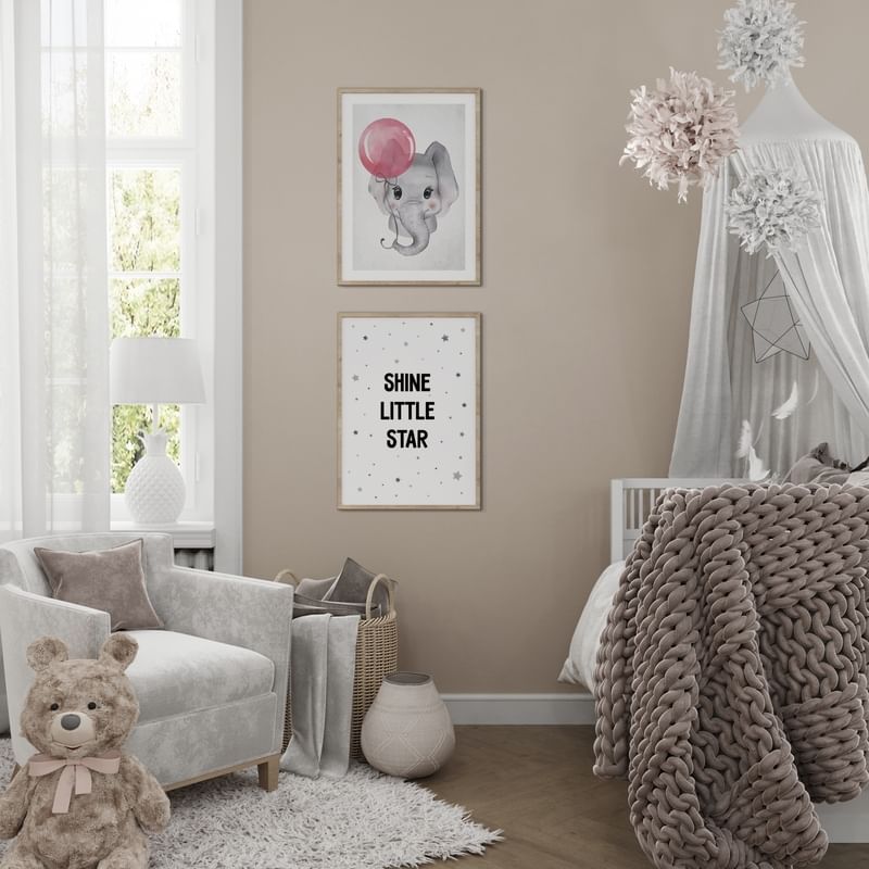 Inspiration till väggen med tavlor i barnrummet. På denna sida har vi samlat våra väggmålningar till barnrummet. Sortera efter väggfärg eller antal affischer och köp hela väggen med tavlor eller välj de affischer och ramar du gillar bäst.