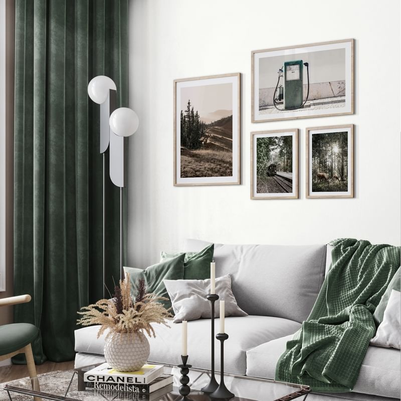 Inspirați-vă pentru un perete cu imagini în camera de zi. Pe această pagină, am adunat colajele noastre pentru sufragerie. Sortați după culoarea peretelui sau după numărul de postere și cumpărați întregul colaj sau alegeți posterele și ramele care vă plac cel mai mult.