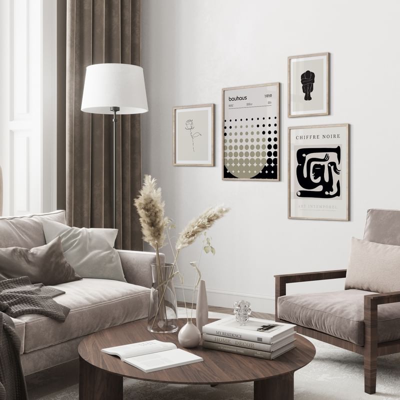 Inspirați-vă pentru un perete cu imagini în camera de zi. Pe această pagină, am adunat colajele noastre pentru sufragerie. Sortați după culoarea peretelui sau după numărul de postere și cumpărați întregul colaj sau alegeți posterele și ramele care vă plac cel mai mult.