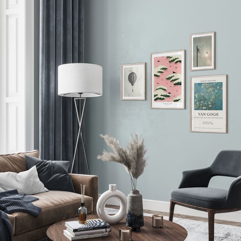 Inspirați-vă pentru un perete cu imagini în camera de zi. Pe această pagină, am adunat colajele noastre pentru sufragerie. Sortați după culoarea peretelui sau după numărul de postere și cumpărați întregul colaj sau alegeți posterele și ramele care vă plac cel mai mult.