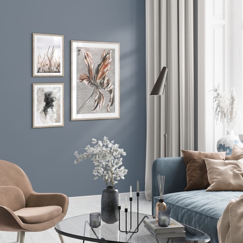 Inspirați-vă pentru un perete cu imagini în camera de zi. Pe această pagină, am adunat colajele noastre pentru sufragerie. Sortați după culoarea peretelui sau după numărul de postere și cumpărați întregul colaj sau alegeți posterele și ramele care vă plac cel mai mult.