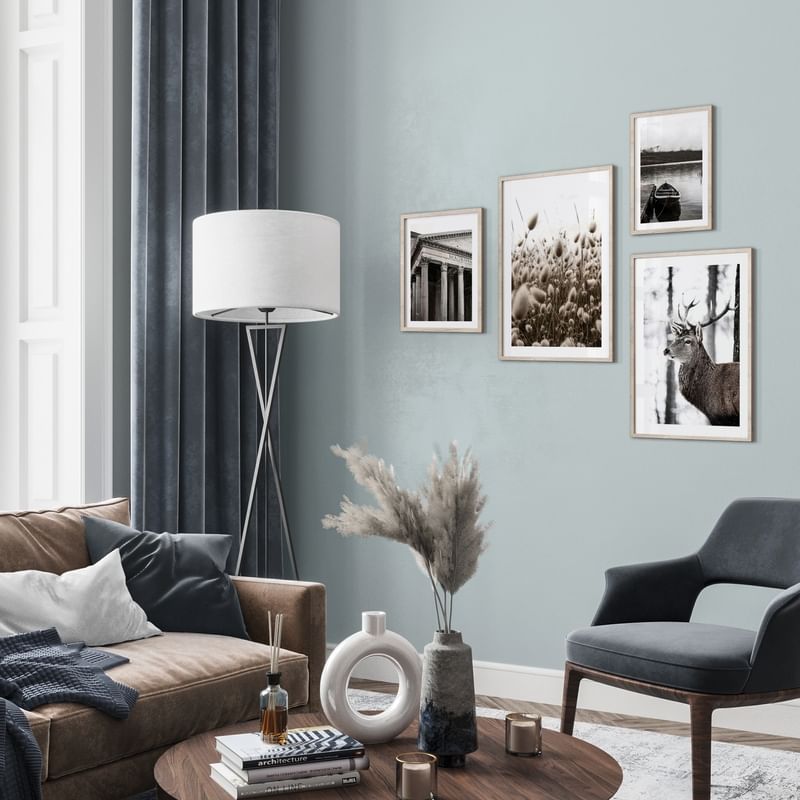 Inspirați-vă pentru un perete cu imagini în camera de zi. Pe această pagină, am adunat colajele noastre pentru sufragerie. Sortați după culoarea peretelui sau după numărul de postere și cumpărați întregul colaj sau alegeți posterele și ramele care vă plac cel mai mult.