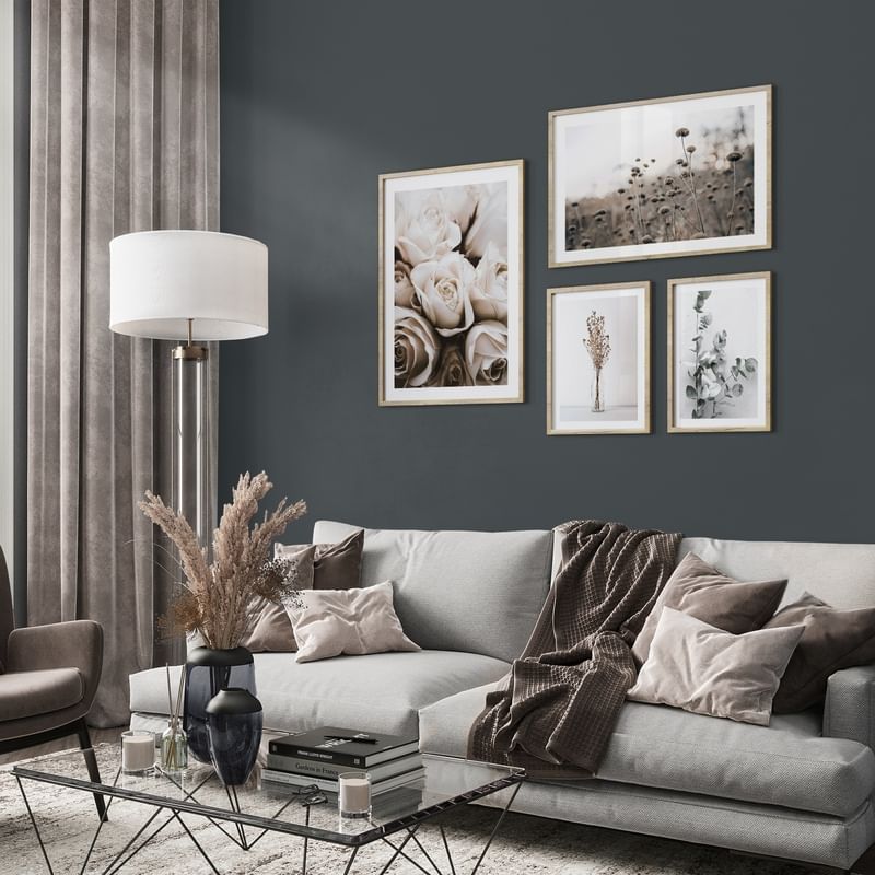 Inspirați-vă pentru un perete cu imagini în camera de zi. Pe această pagină, am adunat colajele noastre pentru sufragerie. Sortați după culoarea peretelui sau după numărul de postere și cumpărați întregul colaj sau alegeți posterele și ramele care vă plac cel mai mult.
