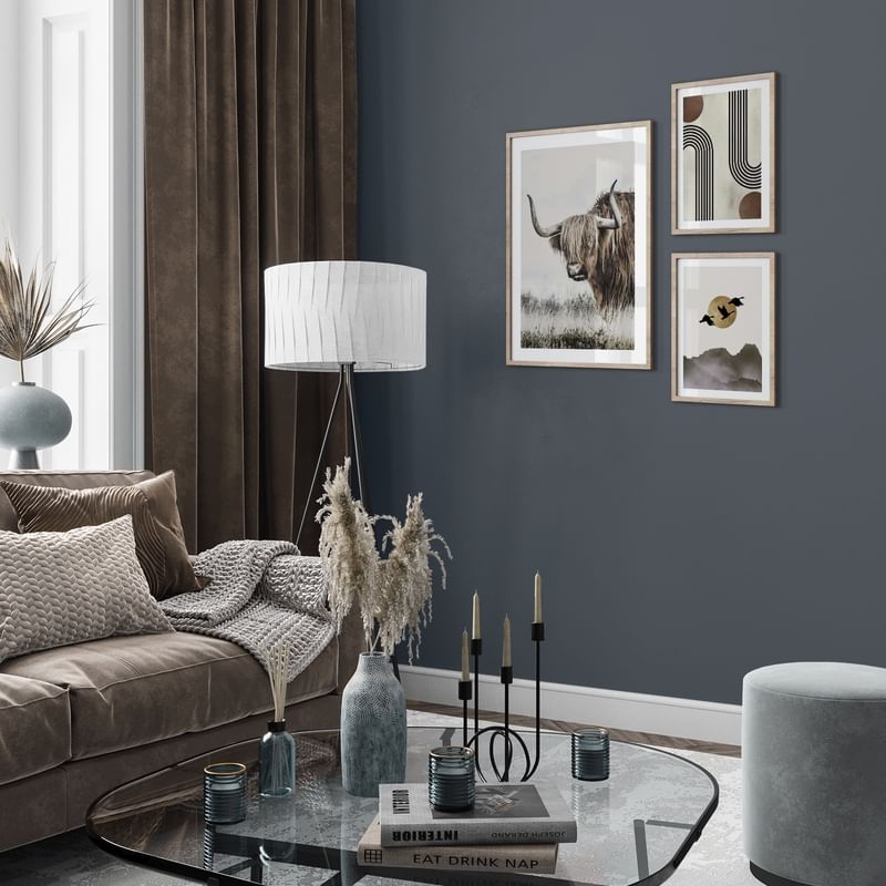 Inspirați-vă pentru un perete cu imagini în camera de zi. Pe această pagină, am adunat colajele noastre pentru sufragerie. Sortați după culoarea peretelui sau după numărul de postere și cumpărați întregul colaj sau alegeți posterele și ramele care vă plac cel mai mult.