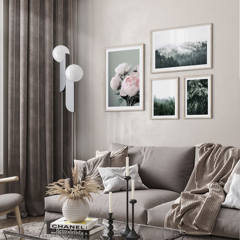 Inspirați-vă pentru un perete cu imagini în camera de zi. Pe această pagină, am adunat colajele noastre pentru sufragerie. Sortați după culoarea peretelui sau după numărul de postere și cumpărați întregul colaj sau alegeți posterele și ramele care vă plac cel mai mult.