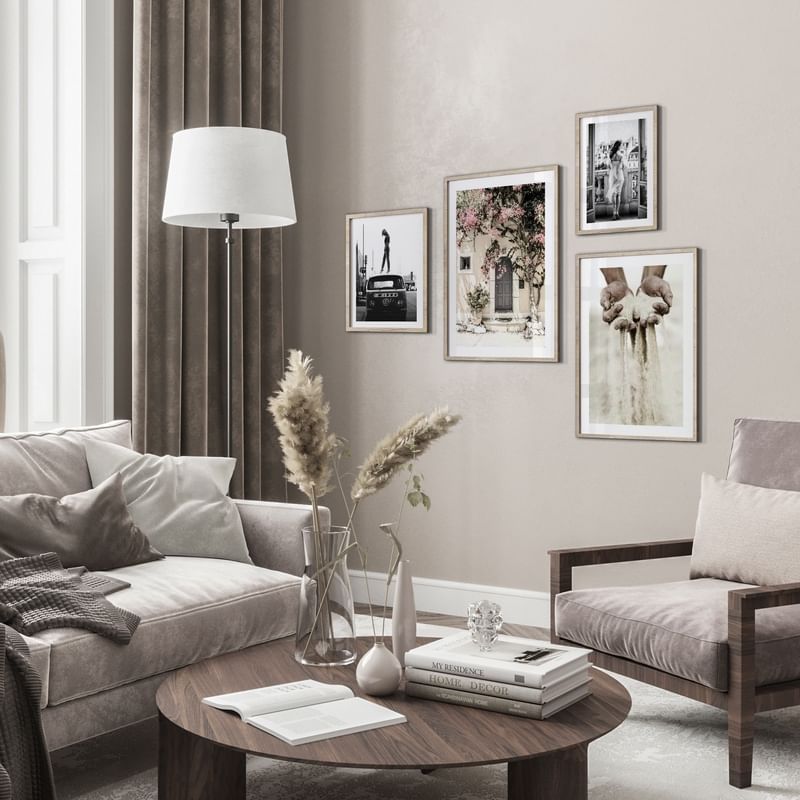 Inspirați-vă pentru un perete cu imagini în camera de zi. Pe această pagină, am adunat colajele noastre pentru sufragerie. Sortați după culoarea peretelui sau după numărul de postere și cumpărați întregul colaj sau alegeți posterele și ramele care vă plac cel mai mult.