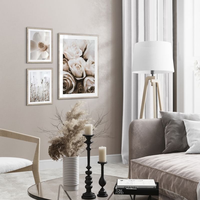 Inspirați-vă pentru un perete cu imagini în camera de zi. Pe această pagină, am adunat colajele noastre pentru sufragerie. Sortați după culoarea peretelui sau după numărul de postere și cumpărați întregul colaj sau alegeți posterele și ramele care vă plac cel mai mult.