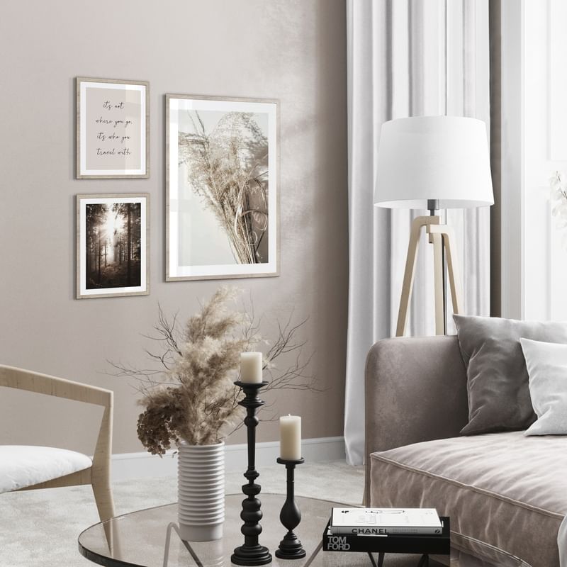 Inspirați-vă pentru un perete cu imagini în camera de zi. Pe această pagină, am adunat colajele noastre pentru sufragerie. Sortați după culoarea peretelui sau după numărul de postere și cumpărați întregul colaj sau alegeți posterele și ramele care vă plac cel mai mult.
