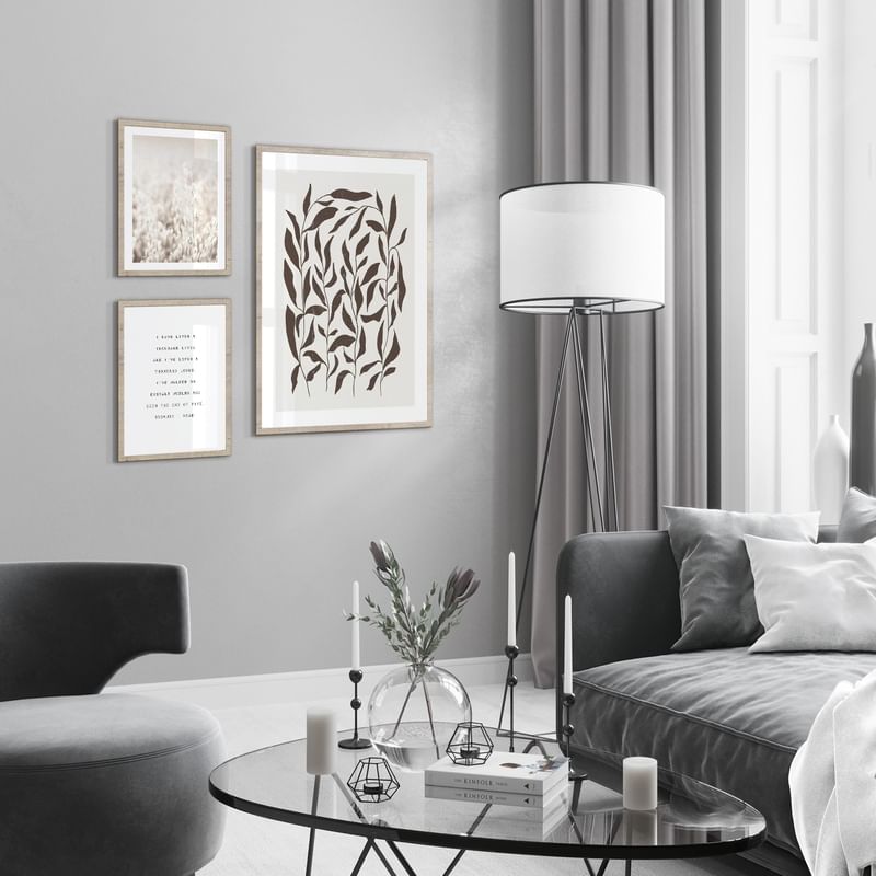 Inspirați-vă pentru un perete cu imagini în camera de zi. Pe această pagină, am adunat colajele noastre pentru sufragerie. Sortați după culoarea peretelui sau după numărul de postere și cumpărați întregul colaj sau alegeți posterele și ramele care vă plac cel mai mult.