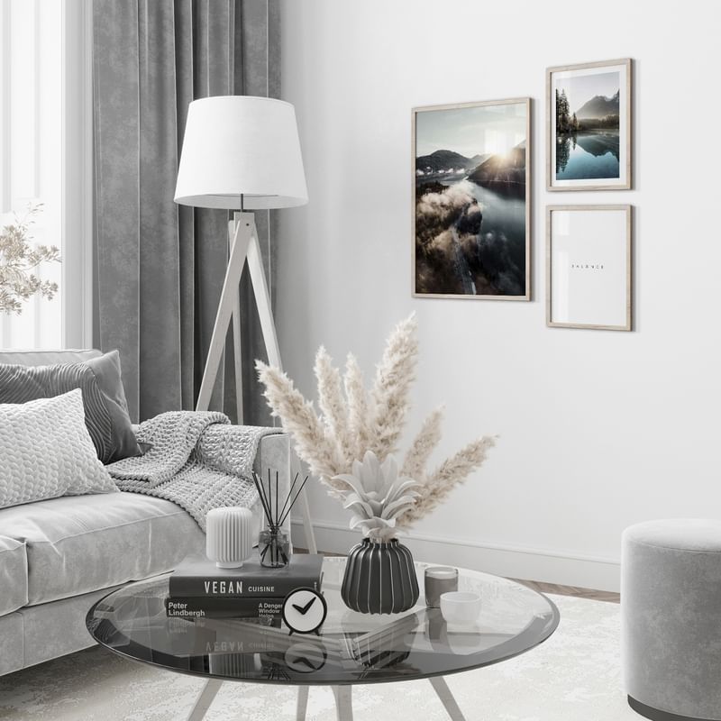 Inspirați-vă pentru un perete cu imagini în camera de zi. Pe această pagină, am adunat colajele noastre pentru sufragerie. Sortați după culoarea peretelui sau după numărul de postere și cumpărați întregul colaj sau alegeți posterele și ramele care vă plac cel mai mult.