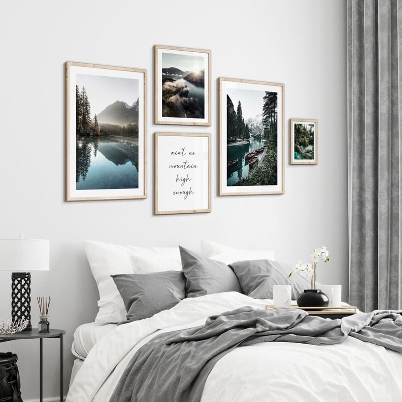 Inspirație pentru un perete cu tablouri în dormitor. Pe această pagină, am adunat colajele noastre de imagini pentru dormitor. Sortați după culoarea peretelui sau după numărul de postere și cumpărați întregul colaj sau alegeți posterele și ramele care vă plac cel mai mult.