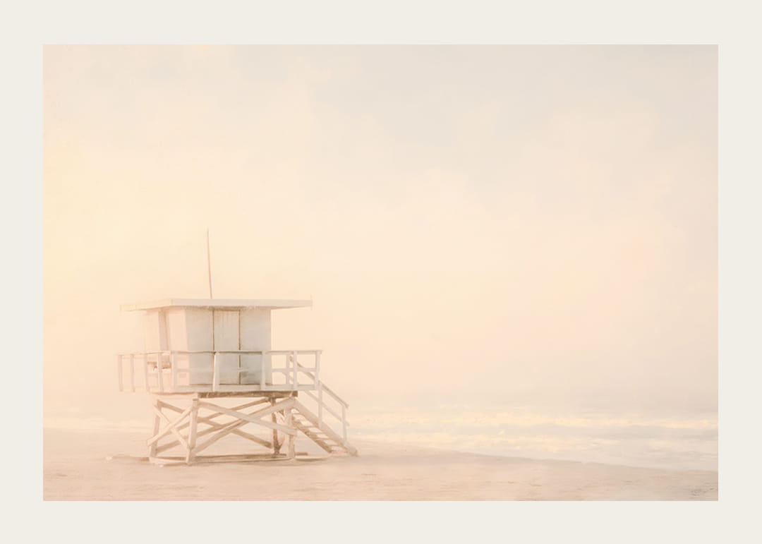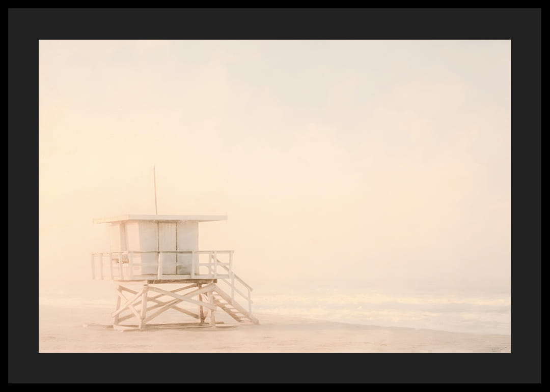 Acest poster de vis surprinde un turn singuratic de salvamar cuibarit în ceața moale a mării. Tonurile ușoare și atenuate creează un sentiment de calm, liniște și orizont nesfârșit. Perfect pentru oricine dorește să adauge o senzație de coastă armonioasă și minimalistă casei lor.