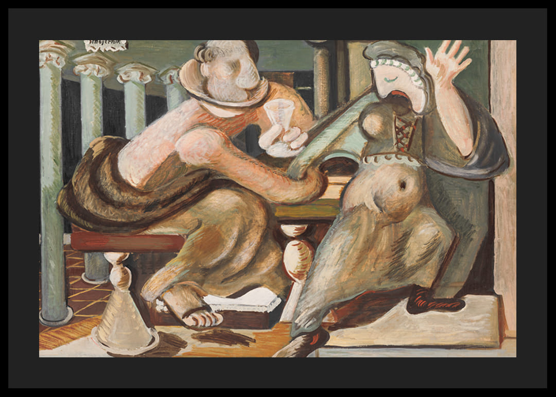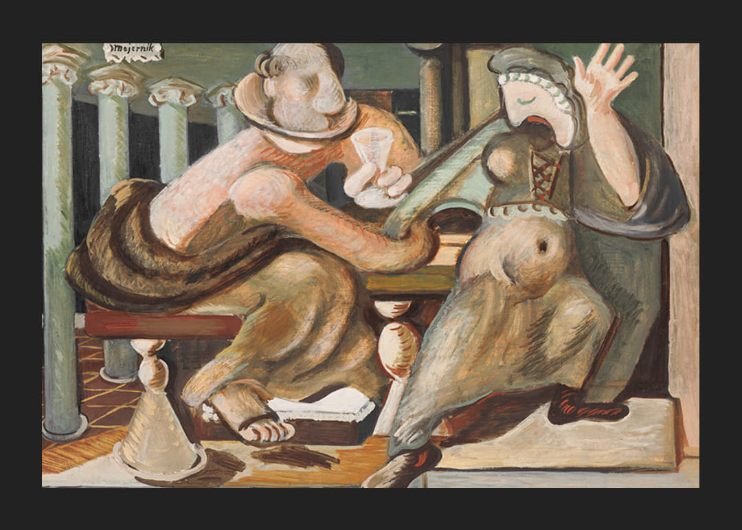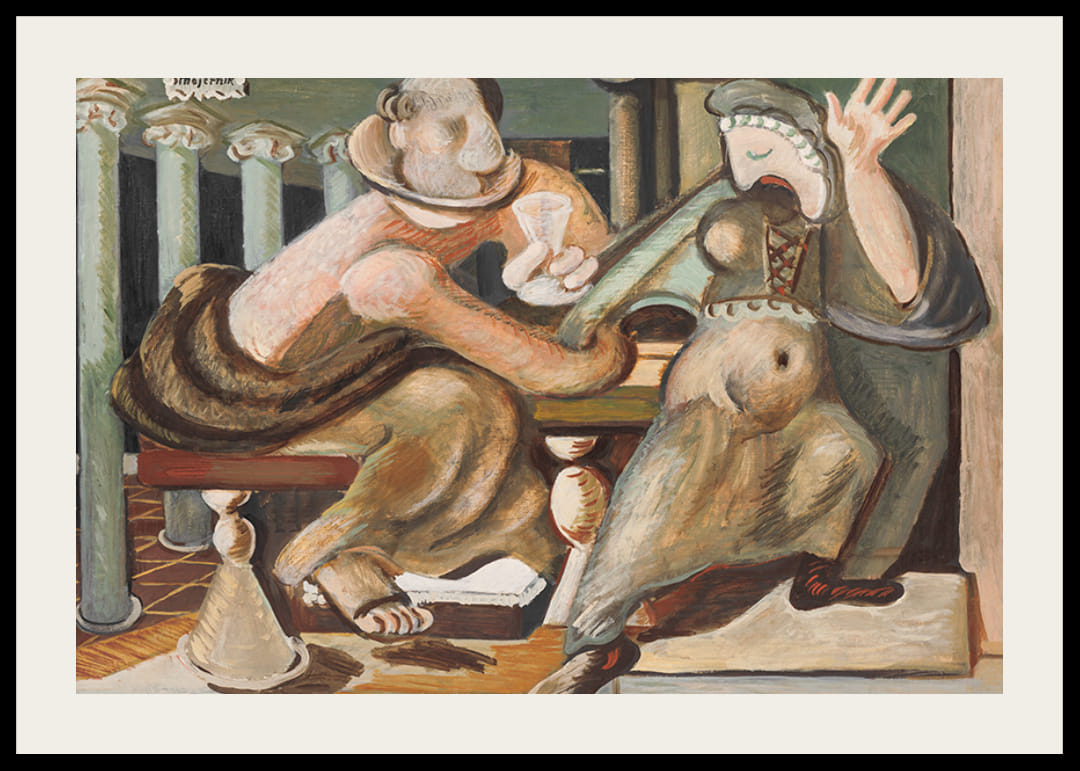 Afiș cu pictura „Seducție” de artistul slovac Cyprian Majernik din 1936.